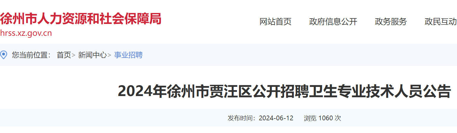 2024年江蘇徐州市賈汪區(qū)公開招聘衛(wèi)生專業(yè)技術(shù)人員公告已發(fā)布,報名時間:2024年6月17日9:00—6月20日12:00?,F(xiàn)將招聘公告原文發(fā)布如下: