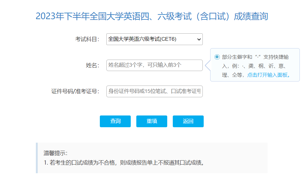 點擊進入>>>2023下半年北京英語六級成績查詢查分入口