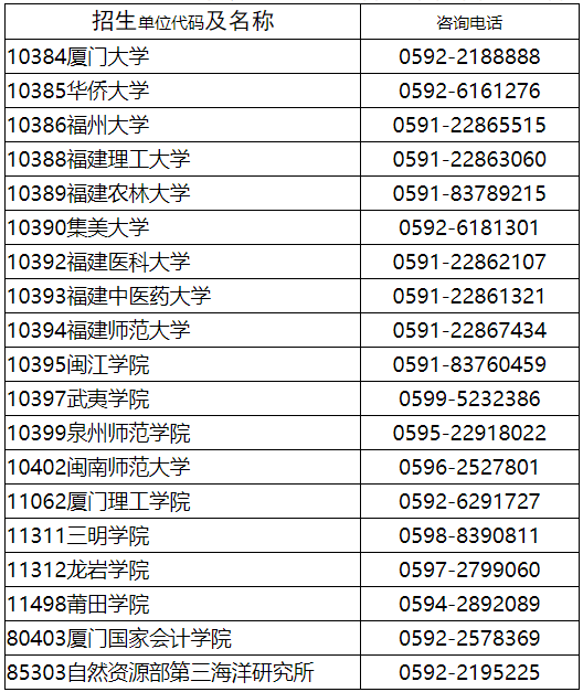 附件:福建省2025年碩士研究生招生單位咨詢電話