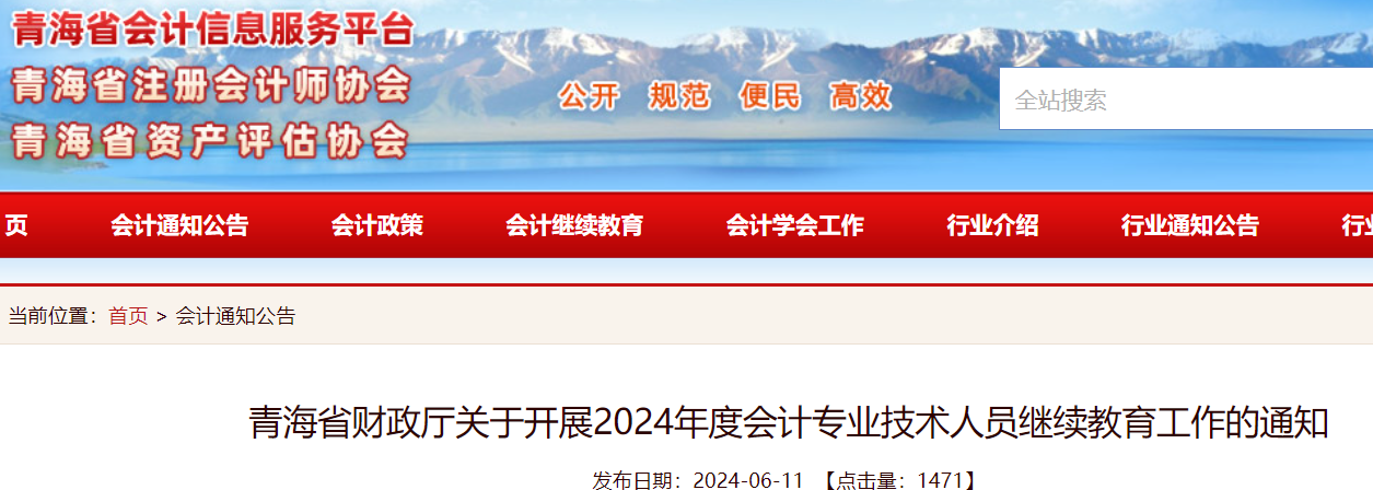 小編根據(jù)青海省財政廳發(fā)布“青海省財政廳關(guān)于開展2024年度會計專業(yè)技術(shù)人員繼續(xù)教育工作的通知”得知,青海2024年會計專業(yè)技術(shù)人員繼續(xù)教育自2024年6月11日開始,截止2024年12月20日24時,以下為通知詳情: