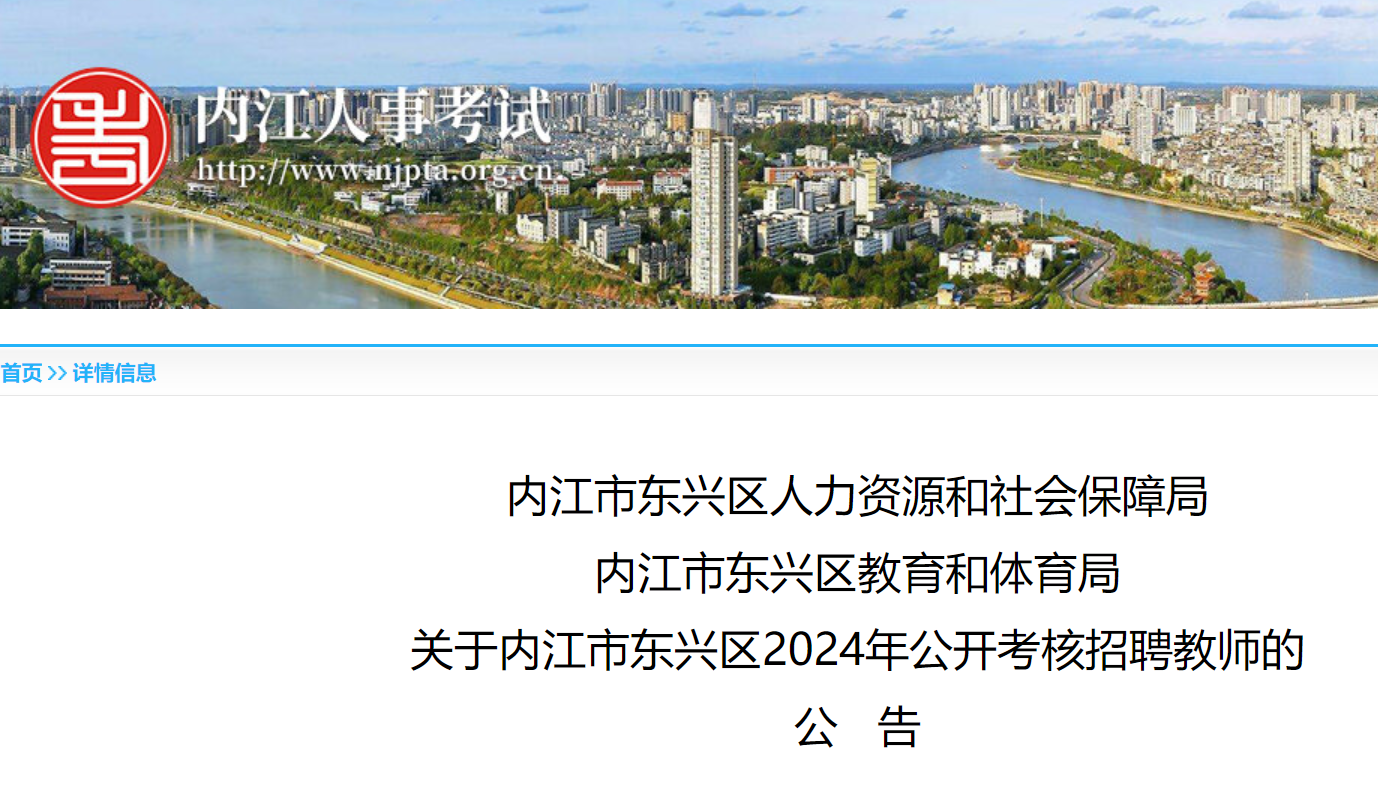2024年四川內(nèi)江市東興區(qū)公開考核招聘教師公告已發(fā)布,報名時間:2024年6月24日至6月28日?,F(xiàn)將招聘公告原文發(fā)布如下: