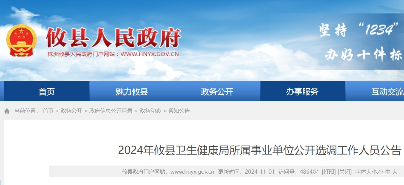 2024年湖南株洲攸縣衛(wèi)生健康局所屬事業(yè)單位公開選調(diào)工作人員公告已發(fā)布,報名時間:2024年11月5日8:30至2024年11月11日17:00?,F(xiàn)將招聘公告原文發(fā)布如下: