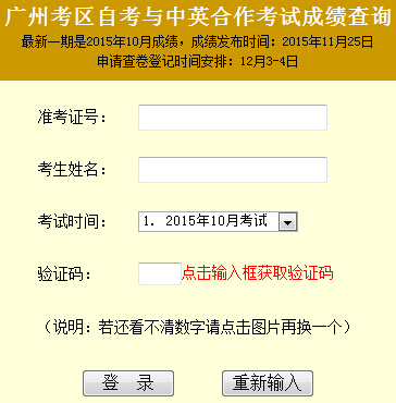 點擊進入:2015年10月廣東廣州自考成績查詢?nèi)肟谝验_通