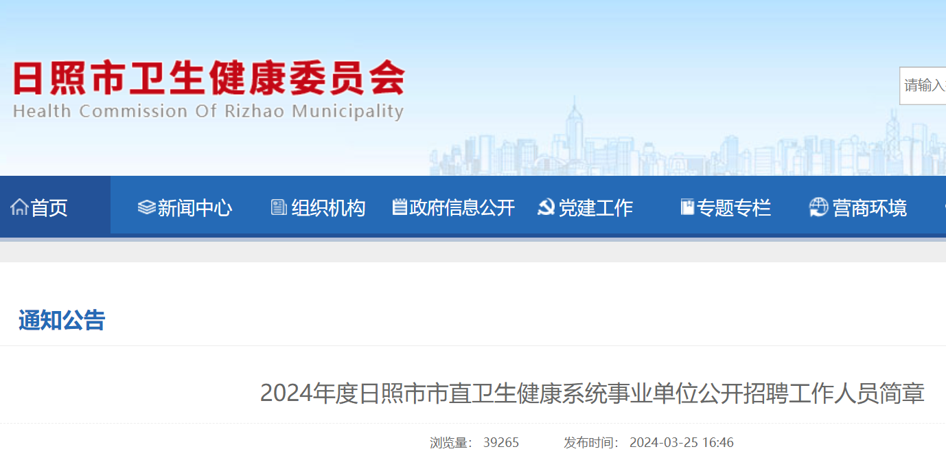 根據(jù)事業(yè)單位公開招聘有關(guān)規(guī)定,結(jié)合市直衛(wèi)生健康系統(tǒng)事業(yè)單位崗位空缺情況和工作需要,現(xiàn)將2024年度日照市市直衛(wèi)生健康系統(tǒng)事業(yè)單位公開招聘工作人員有關(guān)事項公告如下:
