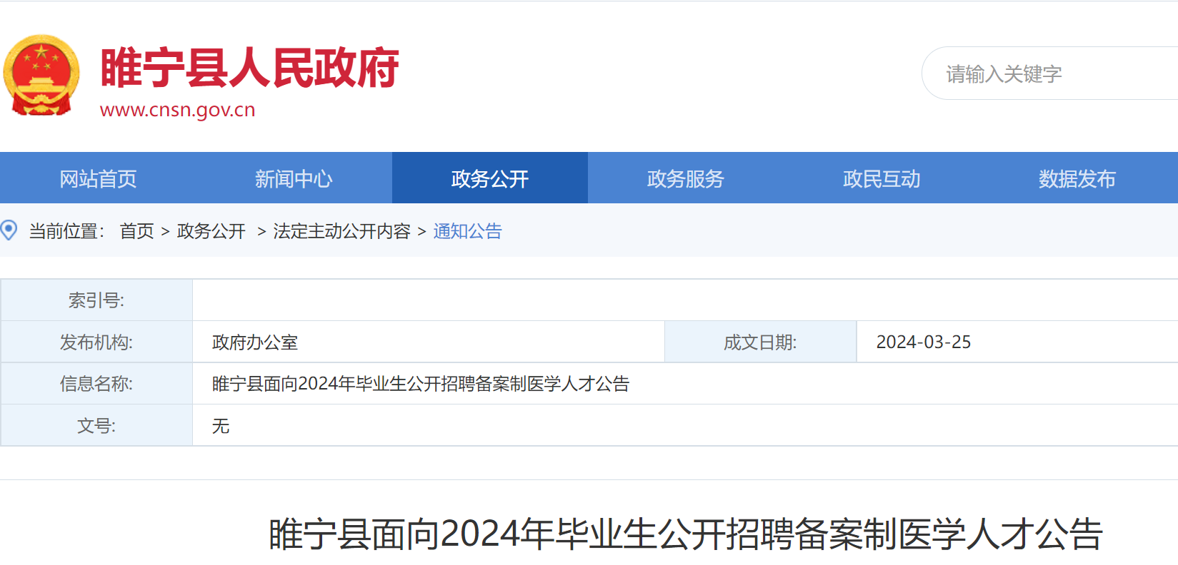 2024江蘇徐州市睢寧縣面向畢業(yè)生招聘備案制醫(yī)學(xué)人才111人,報(bào)名時(shí)間:3月30日起?,F(xiàn)將招聘公告原文發(fā)布如下: