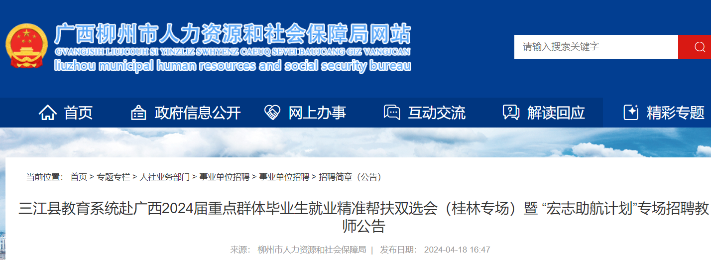 本次公開(kāi)招聘公告、變更公告等具體事宜在柳州人力資源和社會(huì)保障網(wǎng)(rsj.liuzhou.gov.cn)發(fā)布。各單位招聘崗位信息以招聘現(xiàn)場(chǎng)為準(zhǔn)。
