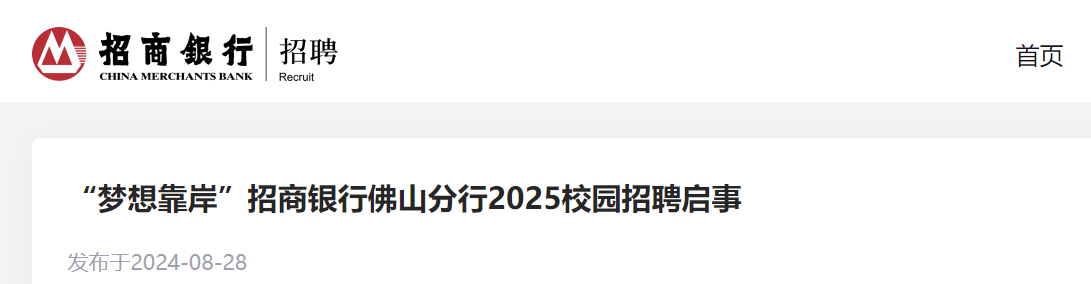 2025“夢想靠岸”招商銀行廣東佛山分行校園招聘啟事已發(fā)布,簡歷投遞時間:10月9日24:00截止,現(xiàn)將招聘公告原文發(fā)布如下: