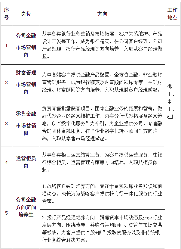 三、招商銀行佛山分行公司金融方向定向培養(yǎng)生培養(yǎng)計劃