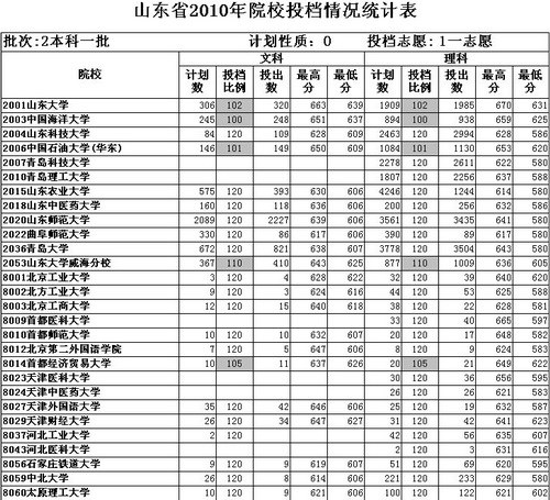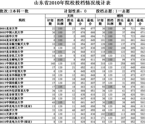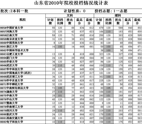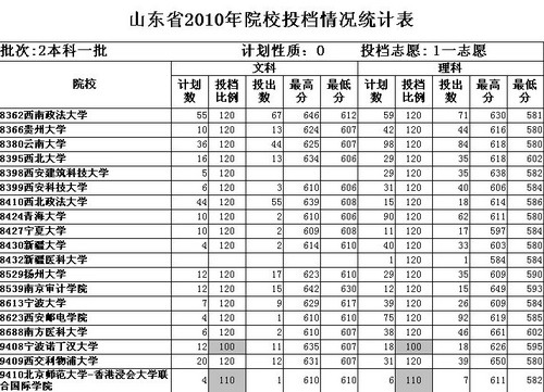 山東2010年一本院校投檔分數(shù)線統(tǒng)計表(組圖)