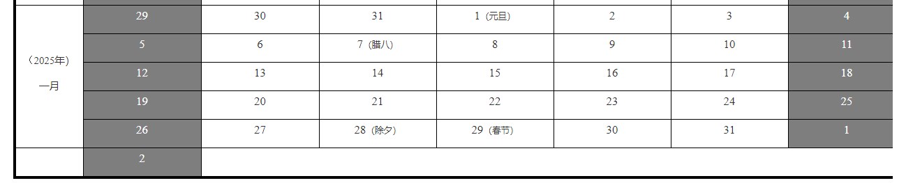*陰影處為國家法定節(jié)假日及周末