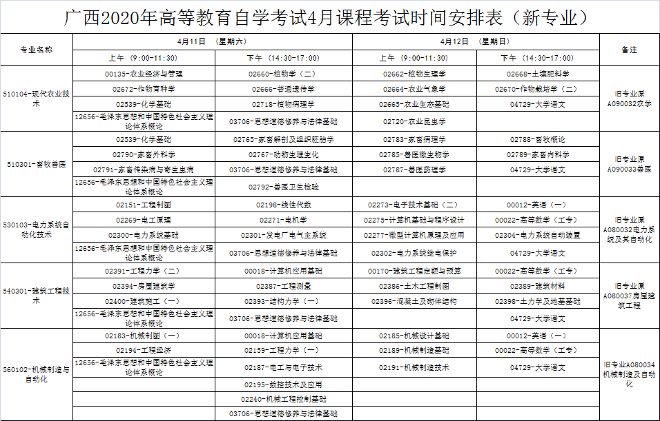 點(diǎn)擊查看完整版>>>廣西2020年高等教育自學(xué)考試4月課程考試時(shí)間安排表
