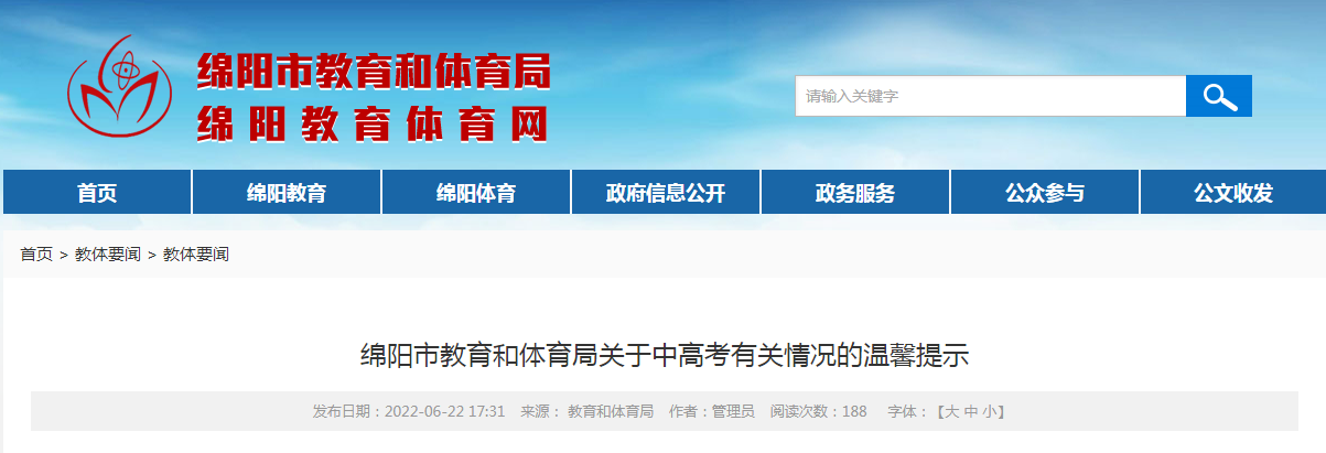 中考頻道從綿陽市教育和體育局了解到,2022年四川綿陽關于中高考有關情況的溫馨提示已發(fā)布,詳情如下: