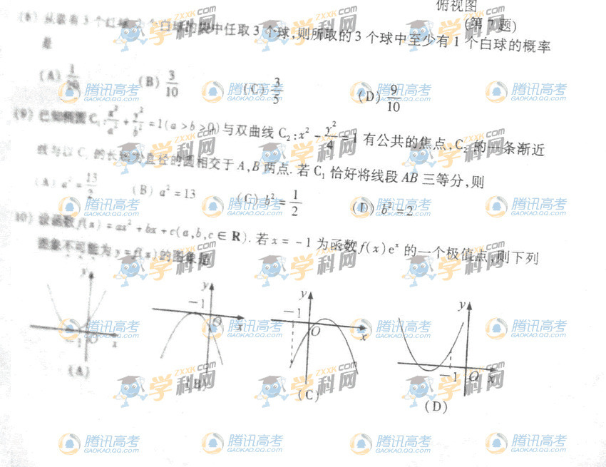 2011浙江高考數學試題及參考答案(文科卷)