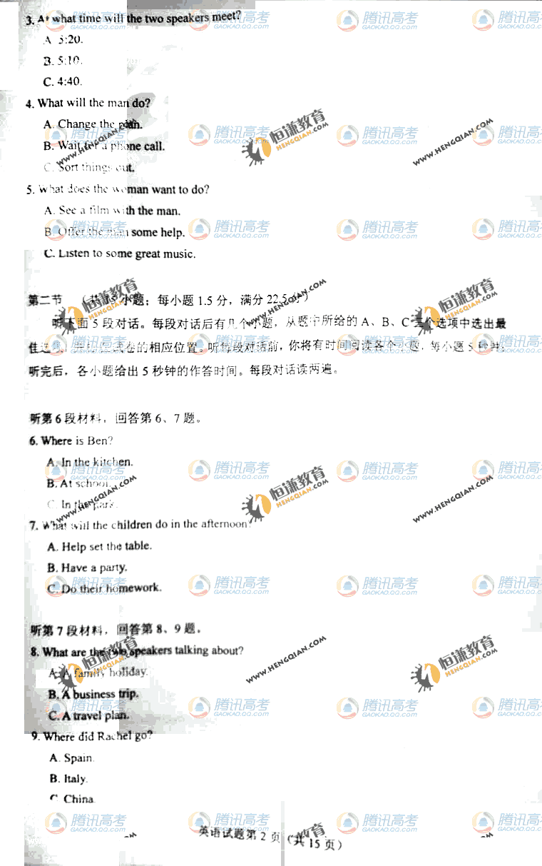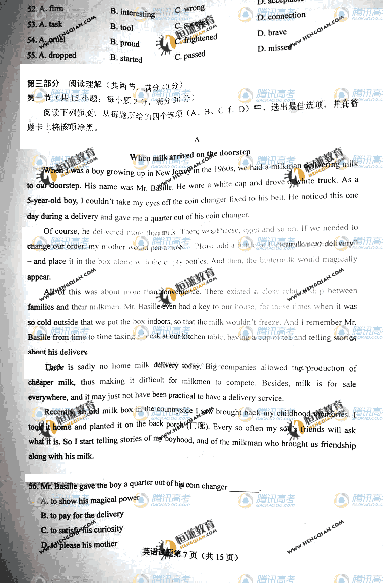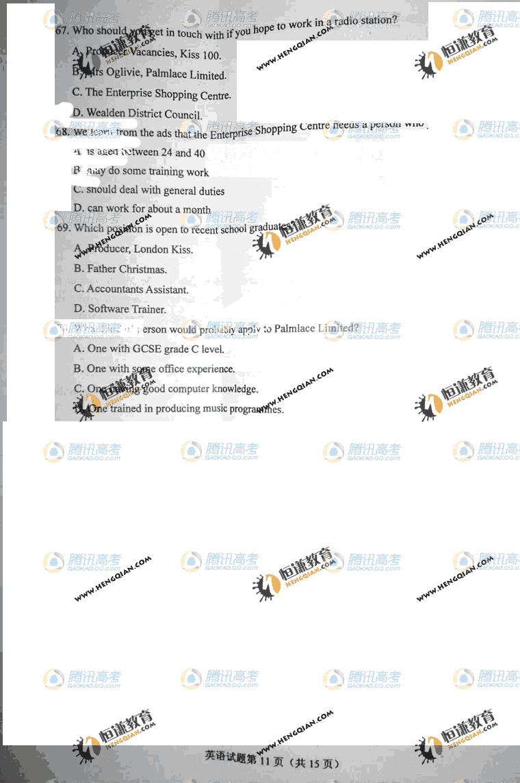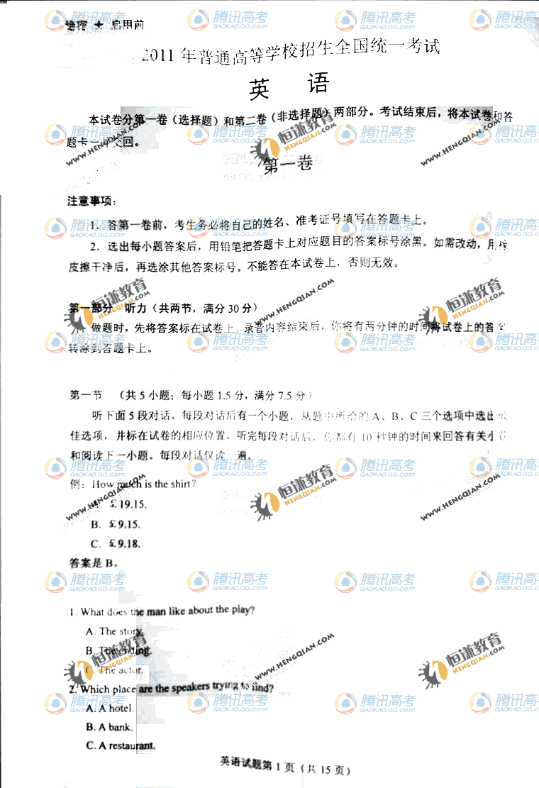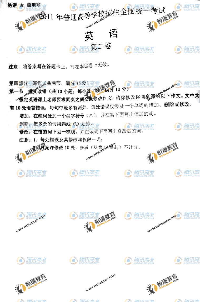 2011高考英語試題(海南卷)