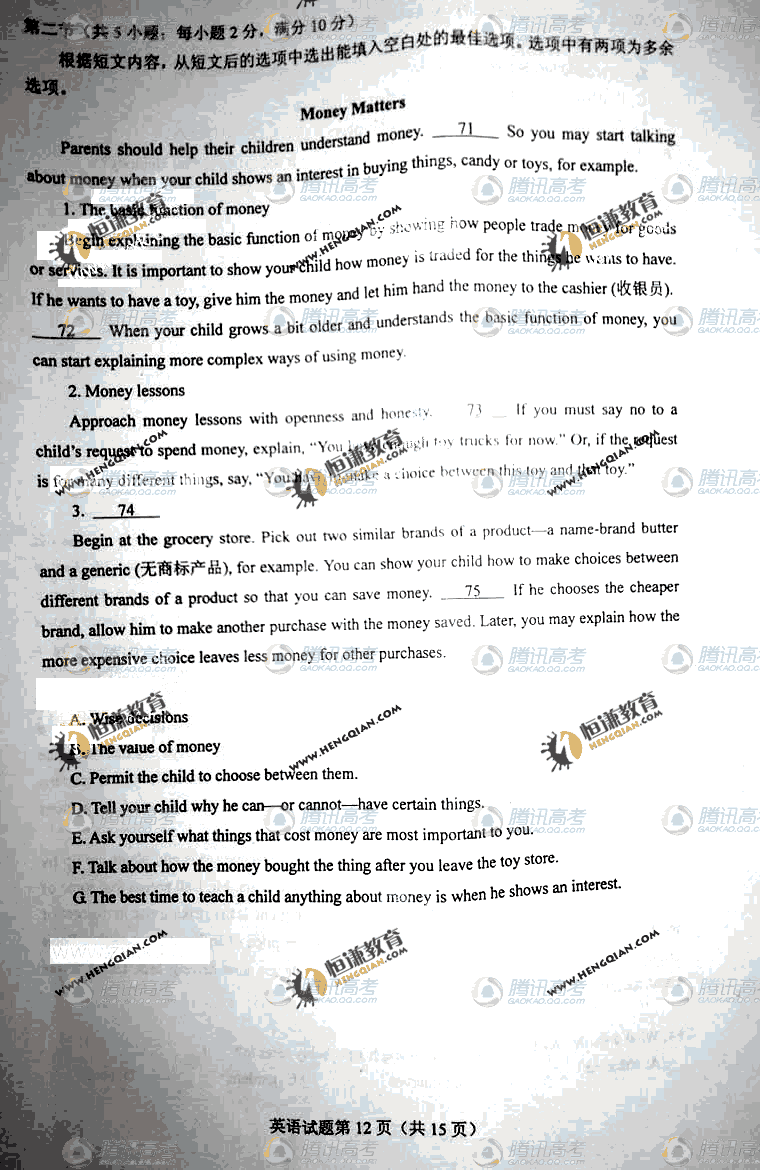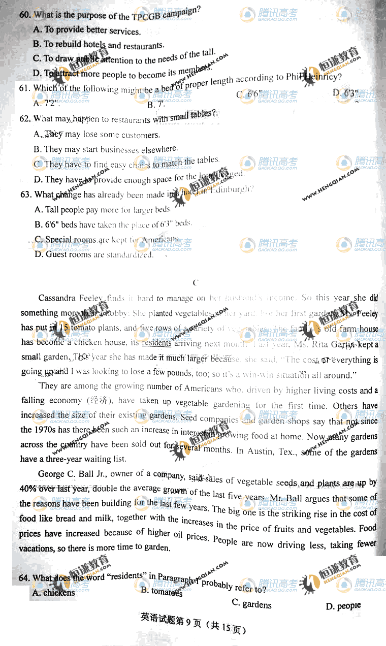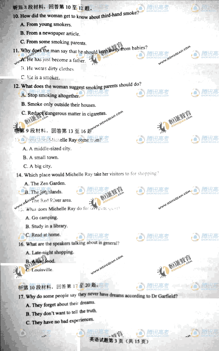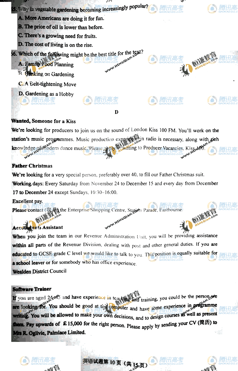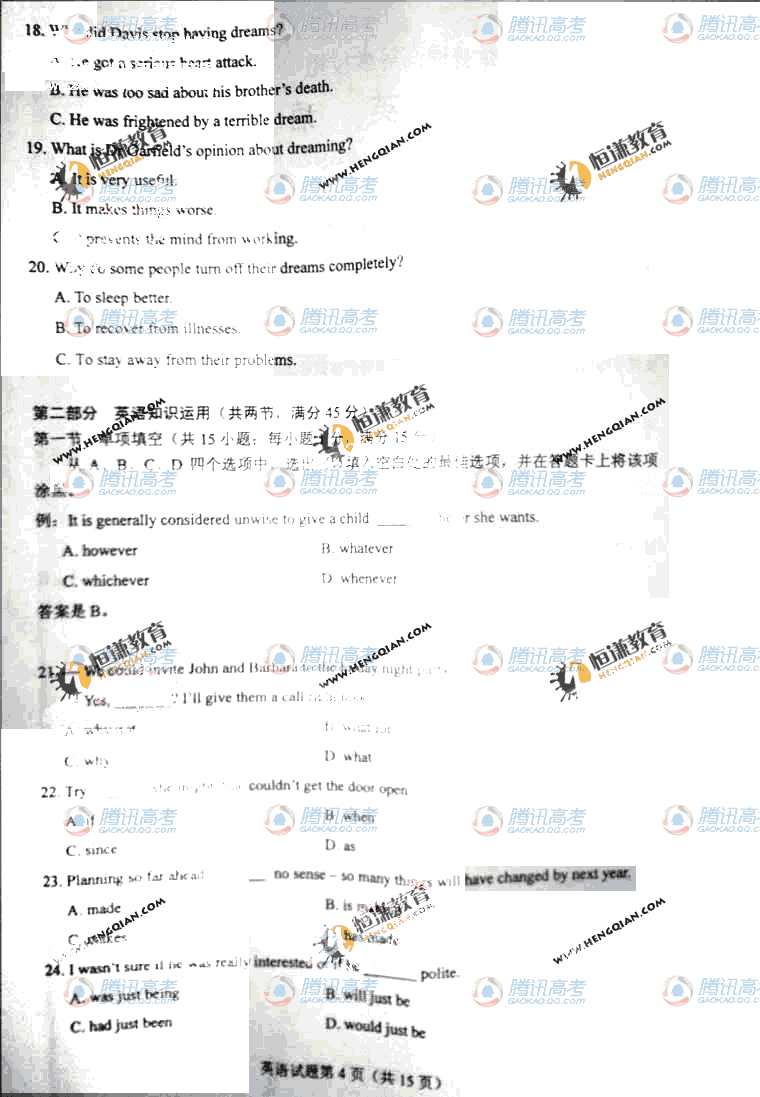 2011高考英語試題(海南卷)