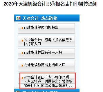 2020年天津初級(jí)會(huì)計(jì)職稱考試準(zhǔn)考證打印推遲信息