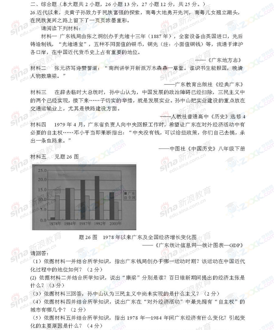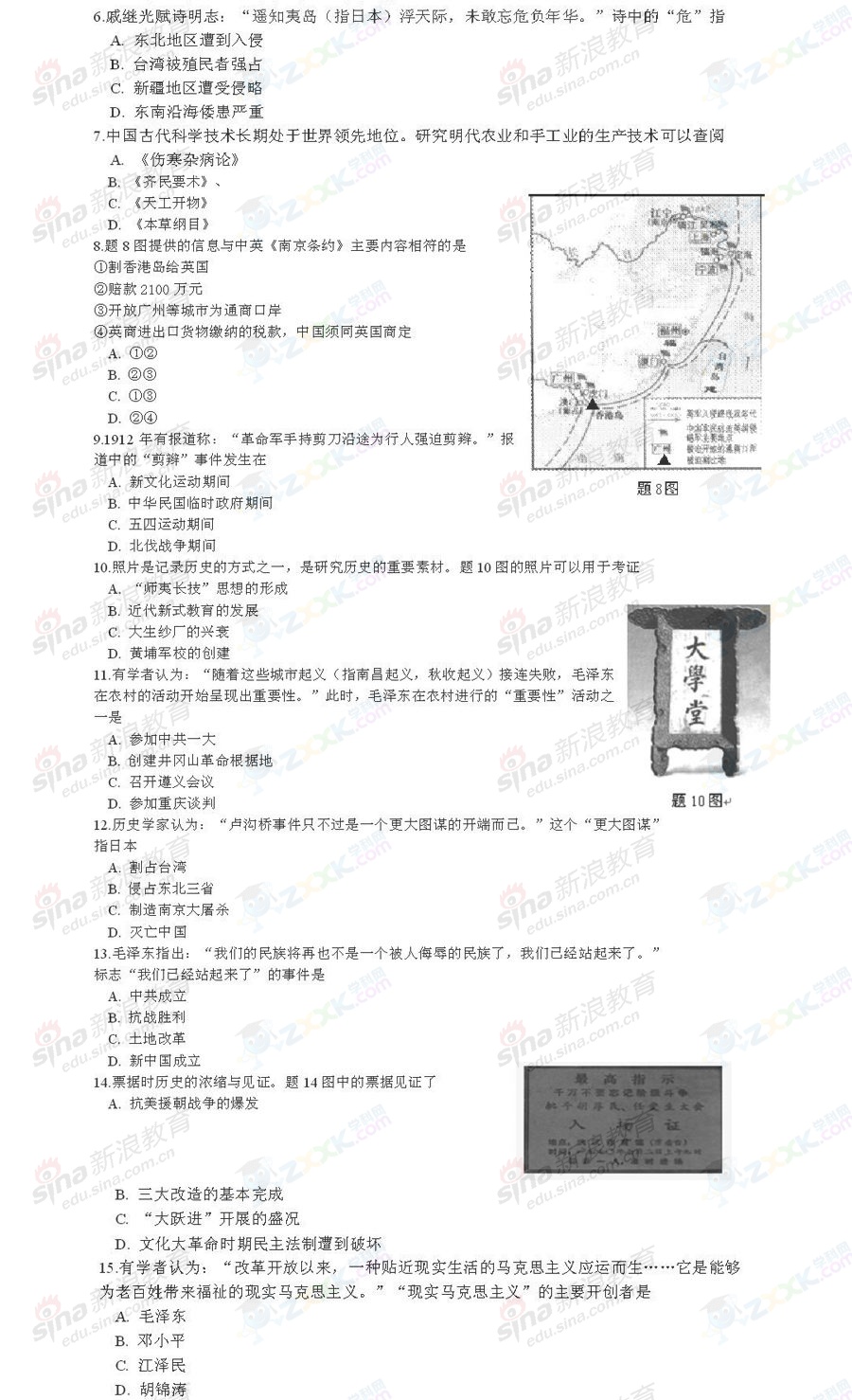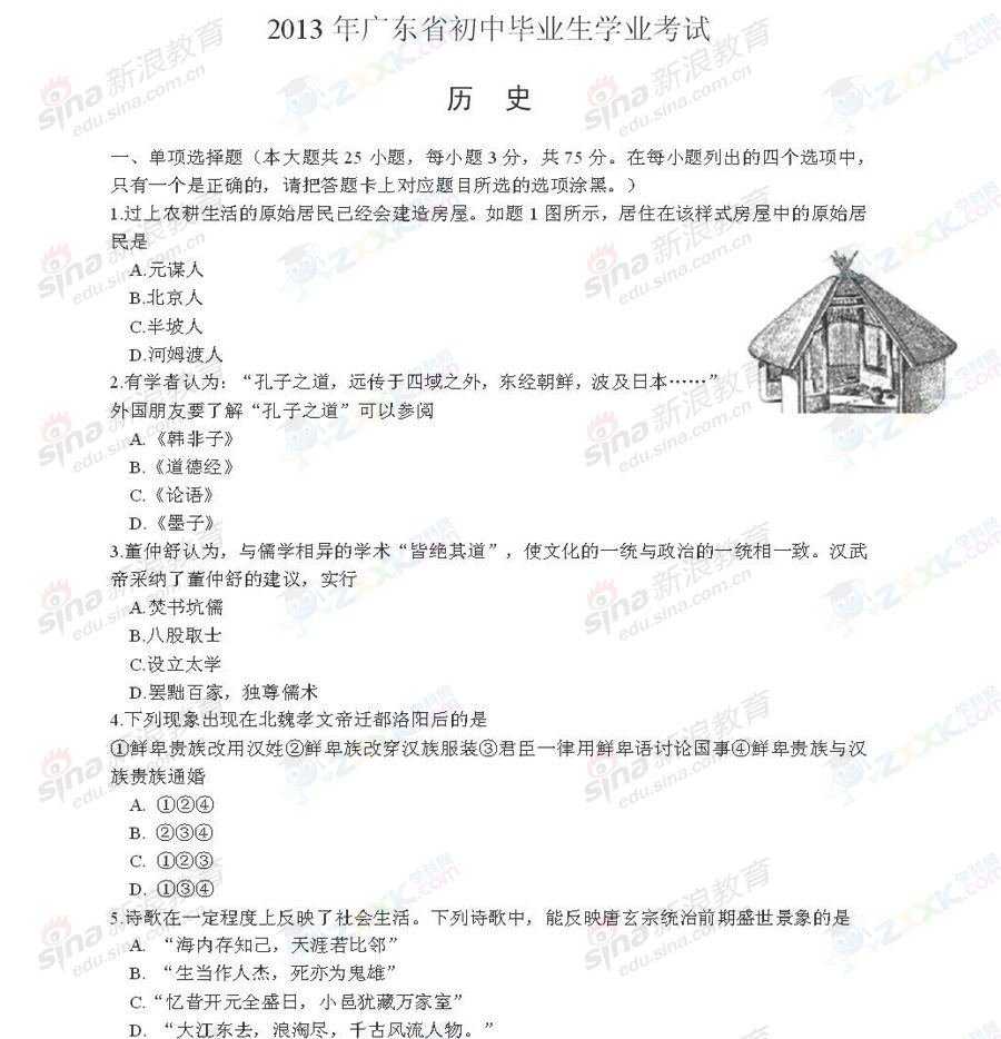 2013年廣東東莞中考?xì)v史真題(完整版)