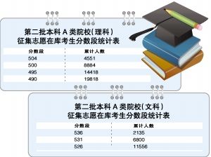 分?jǐn)?shù)線統(tǒng)計表 □本版撰文 信息時報記者 薛冰 梁健敏 通訊員 粵考宣今日16時,廣東高考二A線補(bǔ)報志愿大門將關(guān)閉。二A補(bǔ)報志愿中,理科490分以上夠資格的考生有近二萬人,補(bǔ)錄院校僅3300余招生計劃;文科夠資格補(bǔ)報的考生1.1萬余人,補(bǔ)錄院校有2000余招生計劃。在參加補(bǔ)錄的院校中,外省高校占了相當(dāng)大的比例,其中不乏一些,特別是西北地區(qū),西安等地的高校。本省院校中,嘉應(yīng)學(xué)院、韶關(guān)學(xué)院等有著悠久辦學(xué)歷史的院校,均有數(shù)百個剩余學(xué)位。