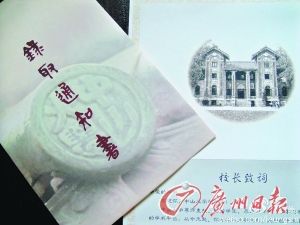 中山大學的通知書封面則是在淡黃色的封面上,由中大教授親筆書寫的“錄取通知書”幾個暗紅色的篆體字正居中間,這是今年中山大學創(chuàng)意的“手寫體”通知書。