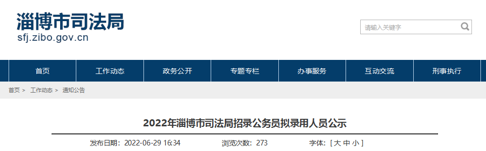 現(xiàn)將2022年淄博市司法局招錄公務(wù)員擬錄用人員進行公示。公示期5天,自2022年6月30日至7月6日(不含節(jié)假日)。公示期間如有異議,請撥打監(jiān)督電話0533-6218019。