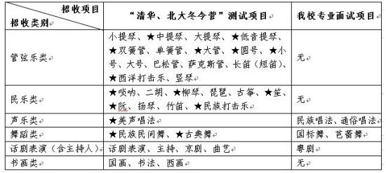 (二)未列入清華、北大冬令營藝術(shù)測試的項目,具備下述條件之一者,必須參加我校組織的專業(yè)面試: