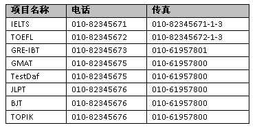 自2011年11月28日起,海外考試報名呼叫中心將遷入新址,屆時將啟用新的電話號碼和通信地址,變更后各海外考試咨詢電話和傳真號碼變更如下: