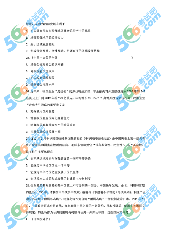 2014年考研政治真題:多選題