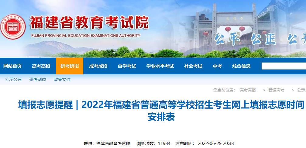 福建省教育考試院:2022年福建莆田高考志愿填報時間及入口