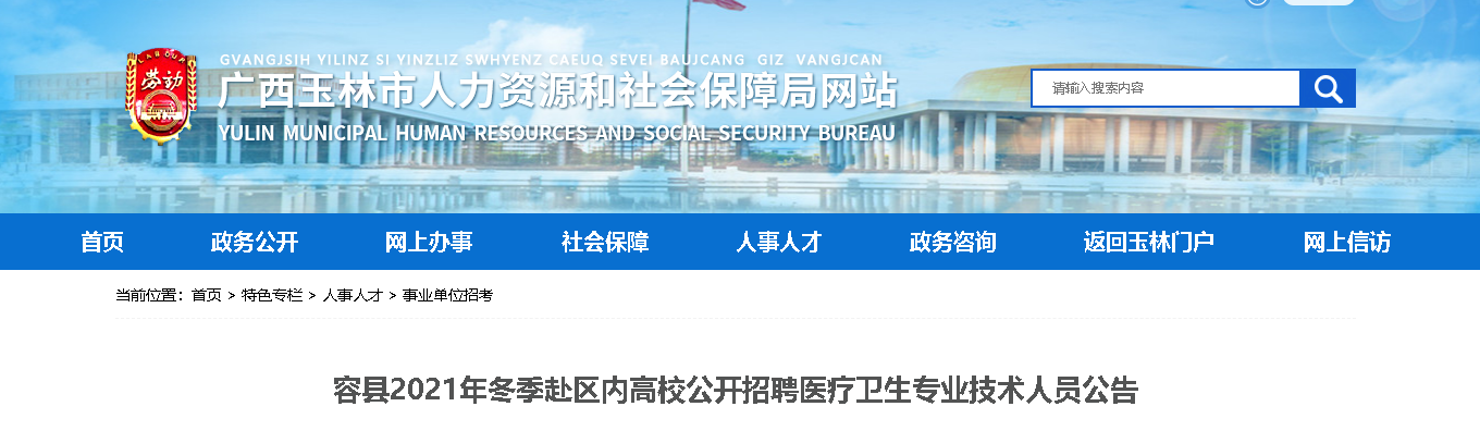 2021冬季廣西玉林市容縣赴區(qū)內(nèi)高校招聘醫(yī)療衛(wèi)生專業(yè)技術(shù)人員39人,報(bào)名時(shí)間:2021年11月28日9:30-12:00截止,現(xiàn)將招聘公告原文發(fā)布如下:
