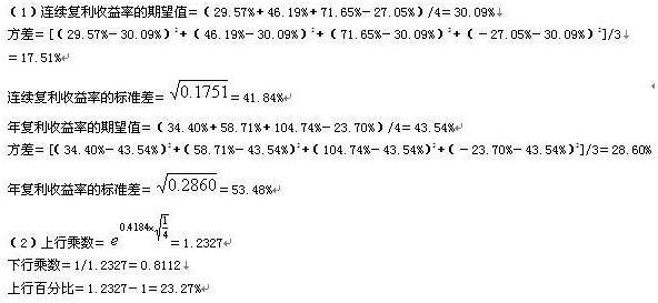【答案解析】:根據(jù)教材253頁(yè)公式可知,甲股票第2年的連續(xù)復(fù)利收益率=ln[(13.5+1.5)/10]=40.55%
