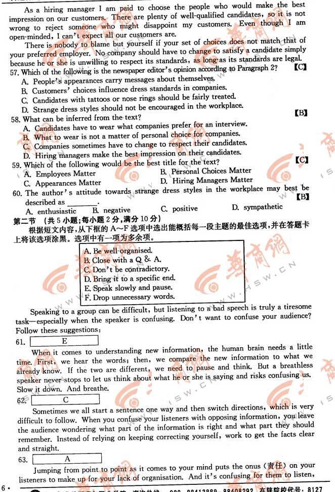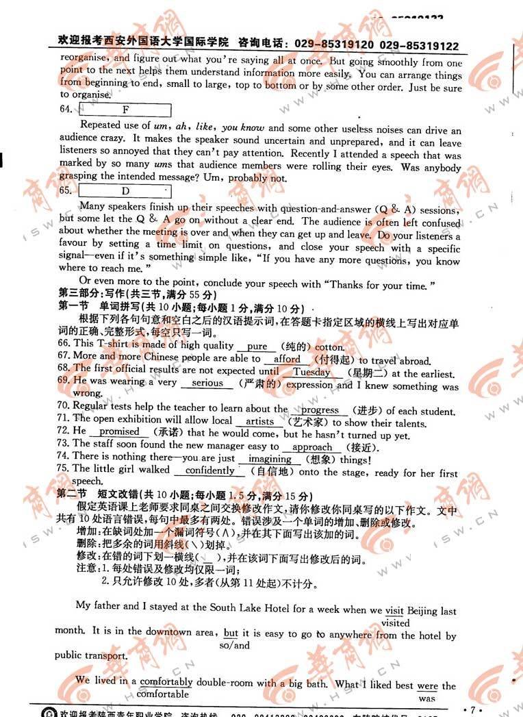 2012陜西高考英語(yǔ)試卷(2)