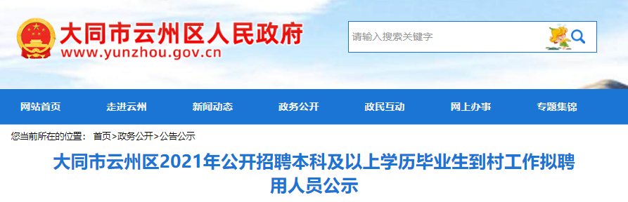 附件:大同市云州區(qū)2021年公開招聘本科及以上學(xué)歷畢業(yè)生到村工作擬聘用人員公示名單