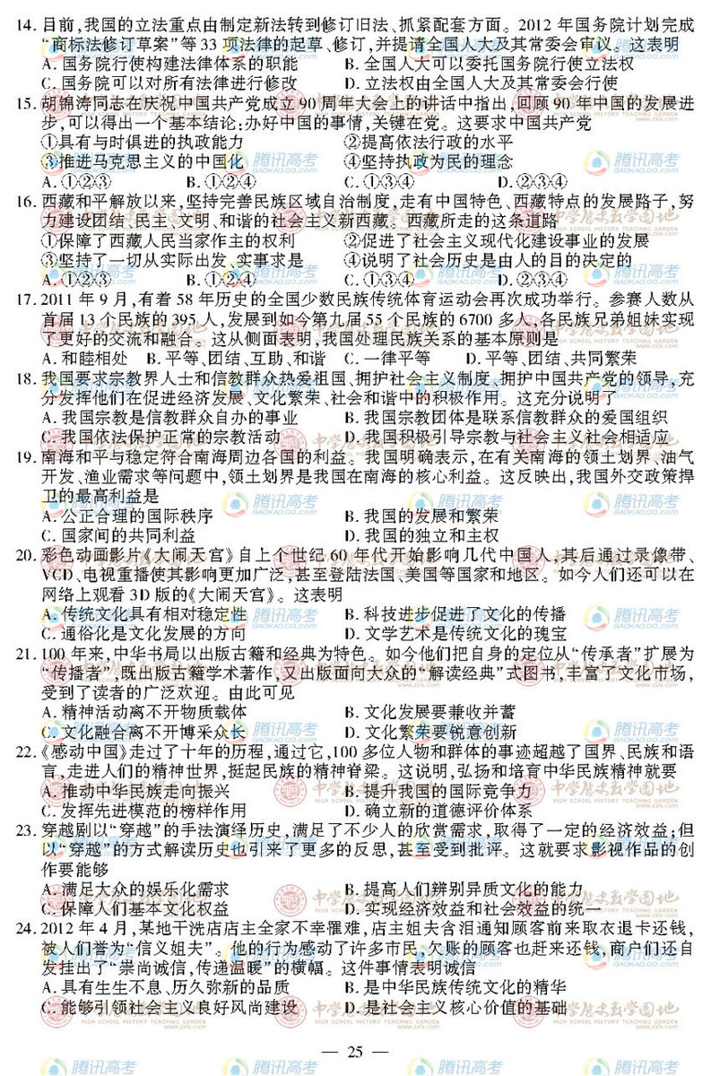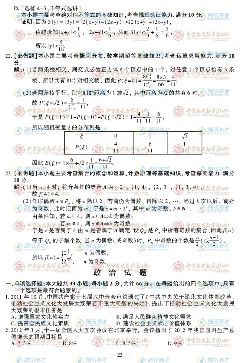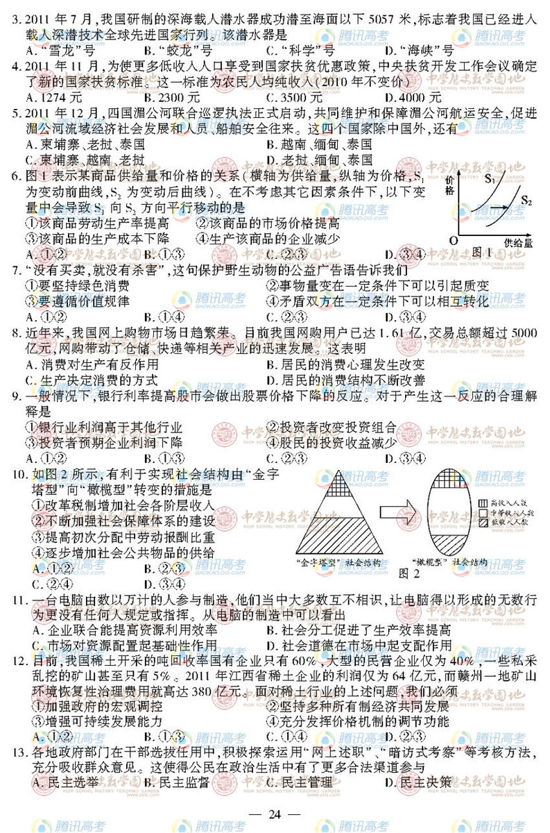 2012年江蘇高考政治試卷(1)