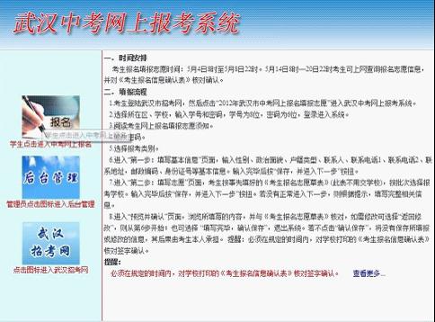 1.考生登陸武漢市招考辦網(wǎng)站,然后點(diǎn)擊“2012年武漢市中考網(wǎng)上報名填報志愿”,出現(xiàn)下圖界面:
