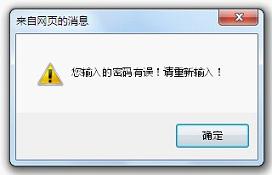 如密碼輸入不正確,會出現(xiàn)提示“密碼錯誤”,如下圖: