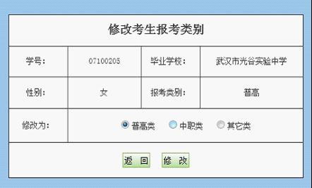 如果從普高類,修改為中職類或其它類,則原來的志愿信息將會清空。
