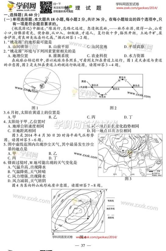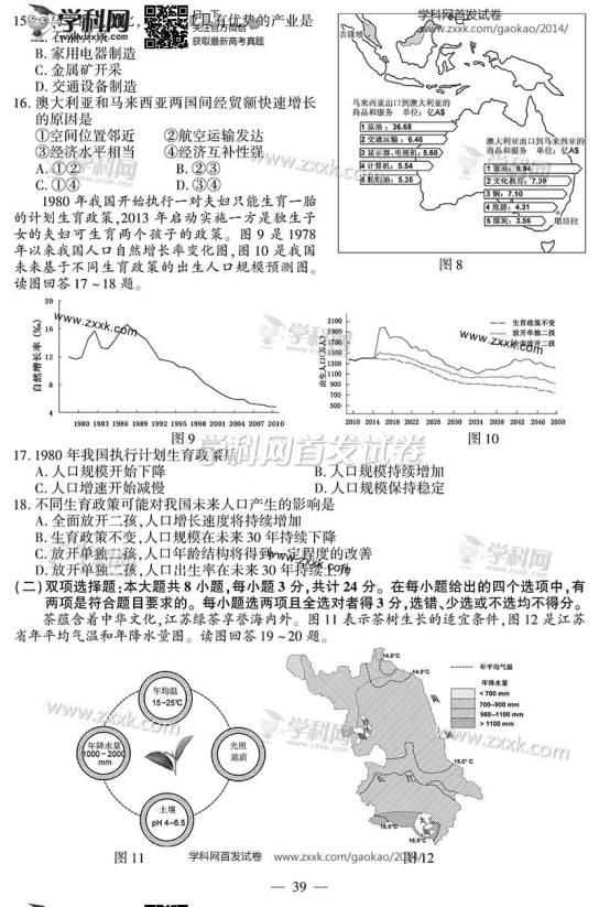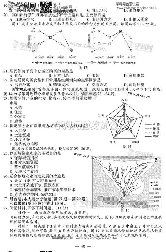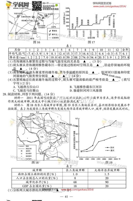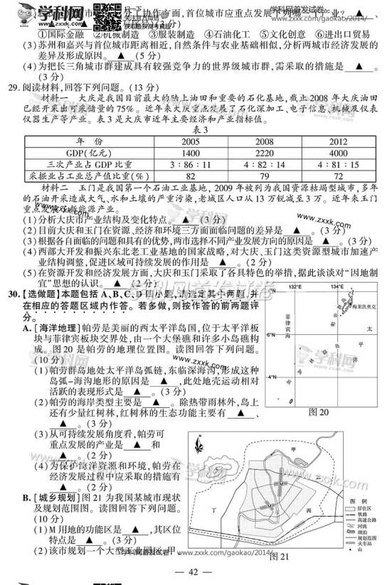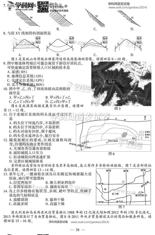 2014年江蘇高考地理試題