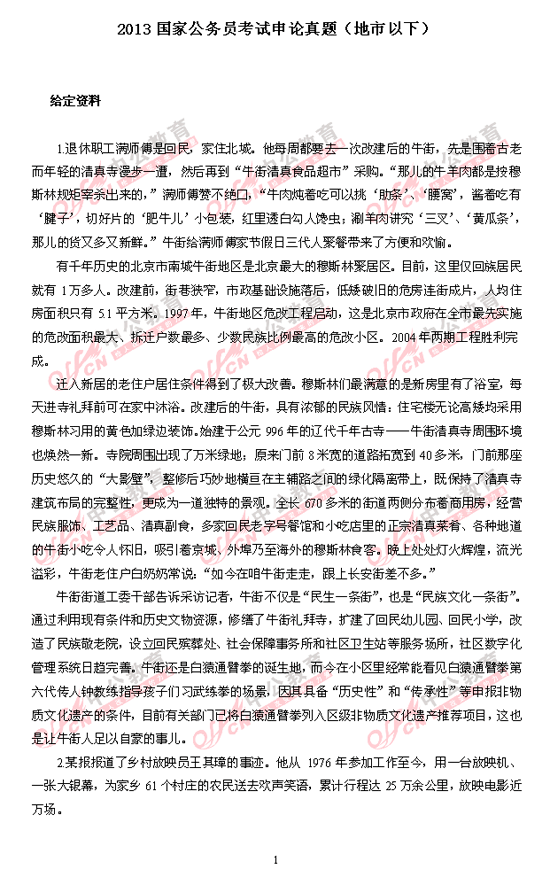 【國考解析】2013年國家公務員考試申論真題及答案解析