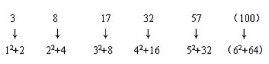 【解析】A。1×2+3=5、5×3+4=19、19×4+5=81、81×5+6=411、411×6+7=(2473),其中第二個(gè)乘數(shù)2、3、4、5、(6)和加數(shù)3、4、5、6、(7)都是連續(xù)自然數(shù)。