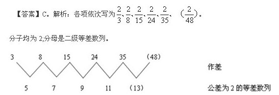 【解析】D。(11-7)×4=16、(16-11)×5=25、(25-16)×6=54、(54-25)×7=(203)。
