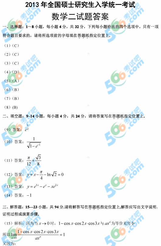 | 2013年考研真題、考研答案匯總 | ||||