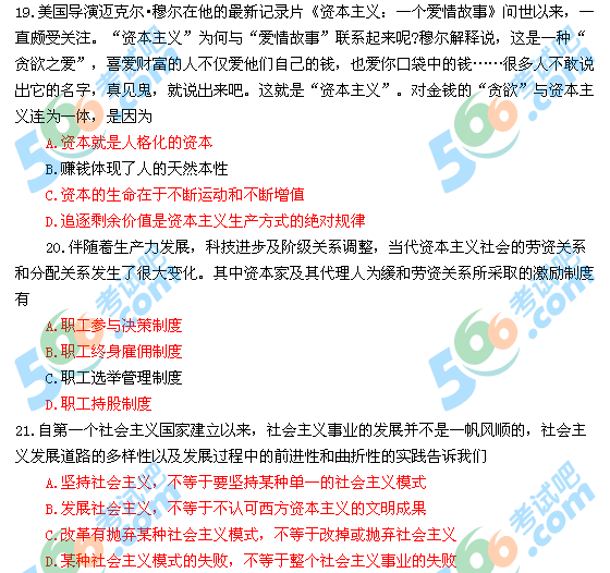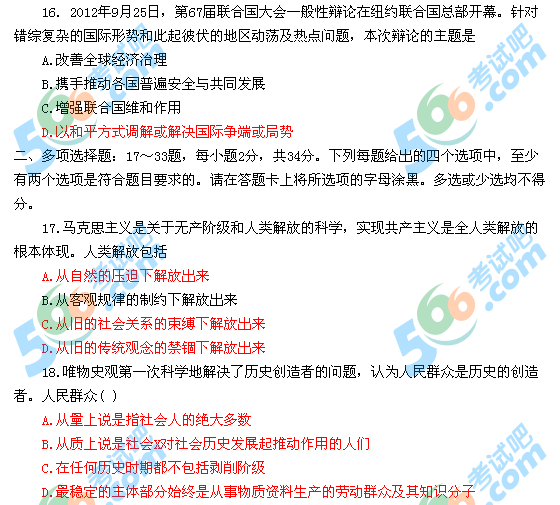 2013年考研政治答案:多選題(新東方版):