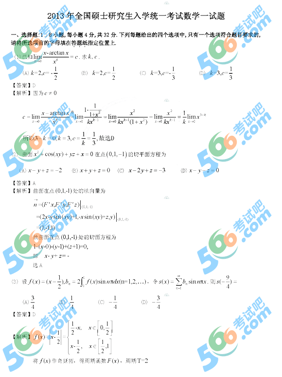 | 2013年考研真題、考研答案匯總 | ||||