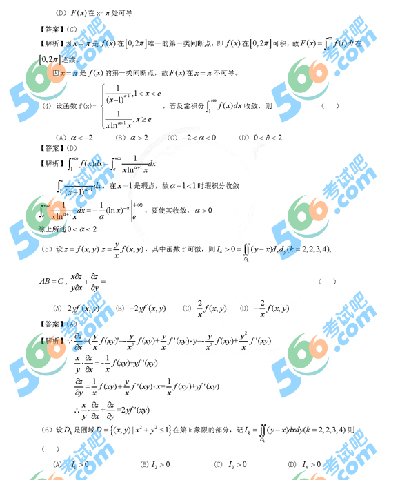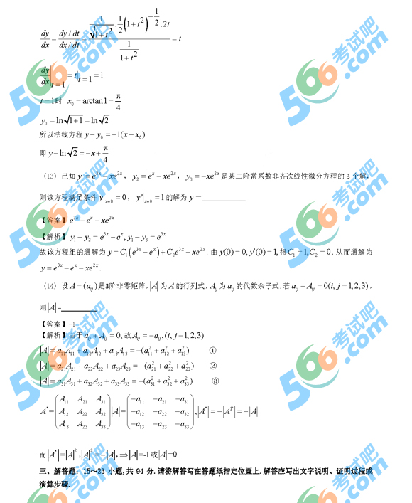 2013考研數(shù)學(xué)答案:數(shù)學(xué)二(海文版)