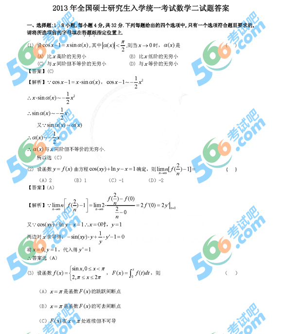 2013考研答案 考研英語答案 考研政治答案 考研數(shù)學(xué)答案 考研專業(yè)課答案