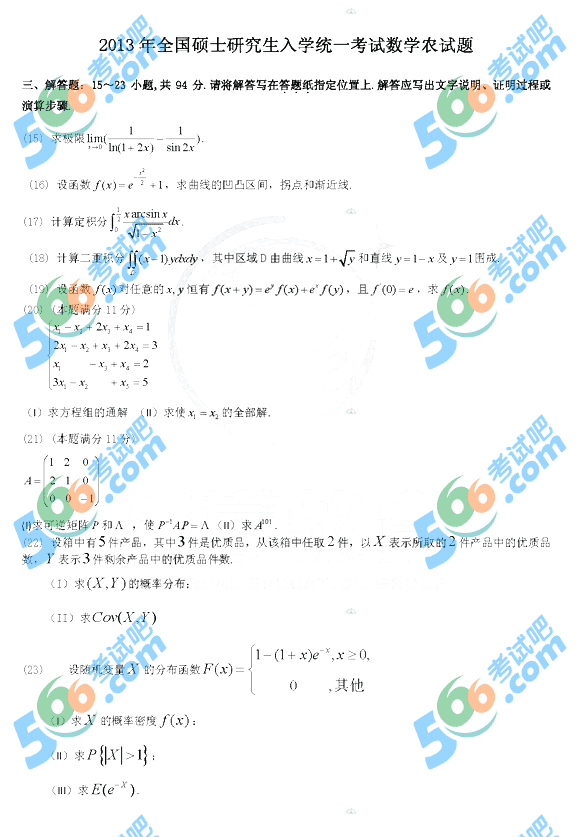 | 2013考研真題 | 考研英語真題 | 考研政治真題 | 考研數(shù)學(xué)真題 | 考研專業(yè)課真題 |