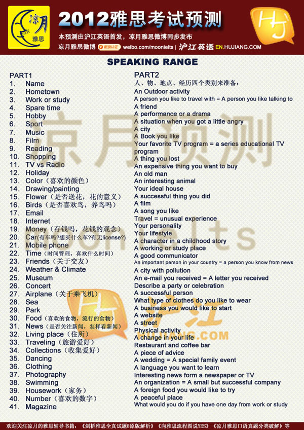 口語題目由于較多且較瑣碎,考生朋友請盡量全面地準(zhǔn)備。