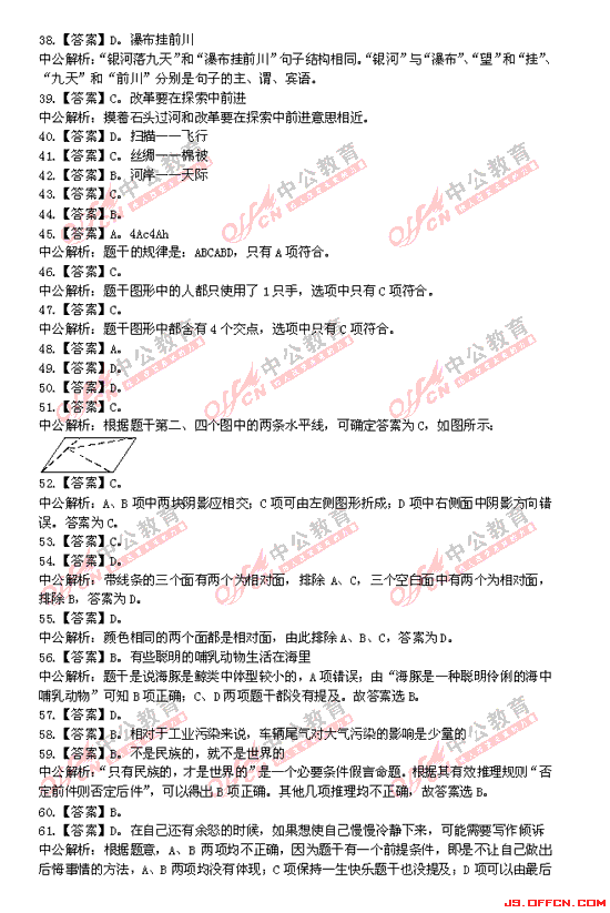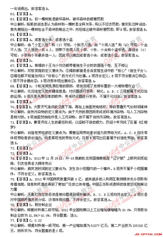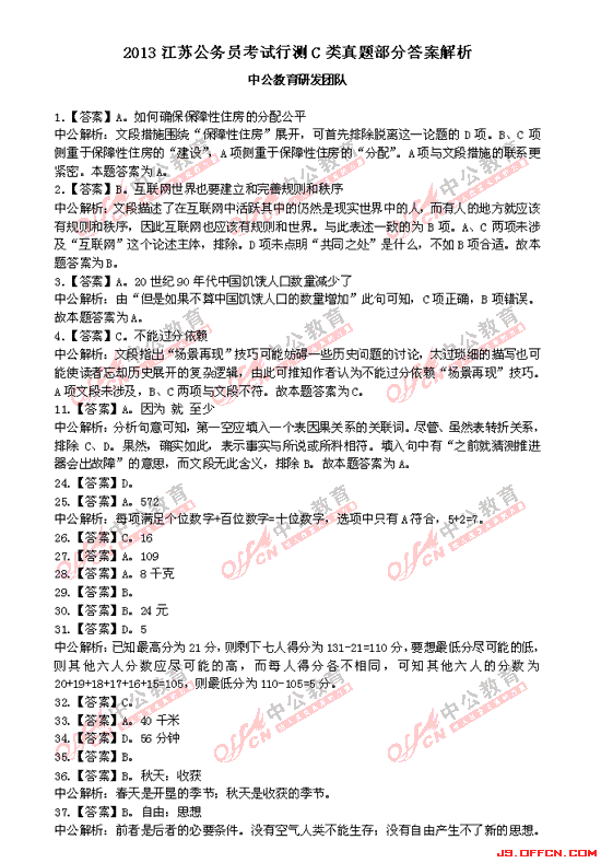2013江蘇公務(wù)員考試行測C類真題部分答案解析