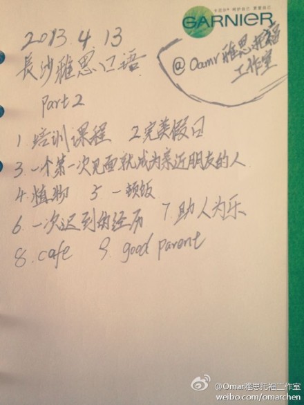 仲愷503…白發(fā)老爺爺…p1:work or study、park、music p2:cafe p3:各種cafe和resraurant 的比較…老爺爺偶爾微笑…口音略重…把park都能發(fā)成pork!!!每次口語不出點(diǎn)狀況簡直對不起觀眾…淚奔