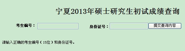 點(diǎn)擊進(jìn)入>>北方民族大學(xué)2013年考研成績(jī)查詢?nèi)肟?點(diǎn)擊進(jìn)入